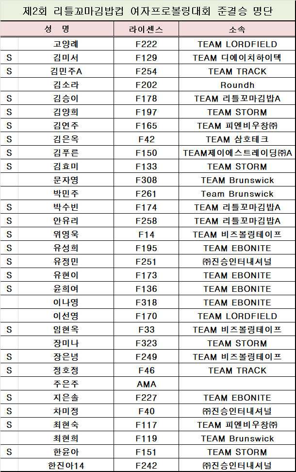 [명단] 제2회 리틀꼬마김밥컵 여자프로볼링대회 준결승 진출 명단 페이지 정보 작성자 한국프로볼링 작성일 25-09-10 19:14 조회 926회 댓글 0건 본문 . 추천0 이전글[대진표] 제2회 리틀꼬마김밥컵 여자프로볼링대회 파이널 대진표 다음글[조배정] 2025 KPBA 하반기 트라이얼 조배정 목록 댓글목록 0 댓글목록 등록된 댓글이 없습니다.